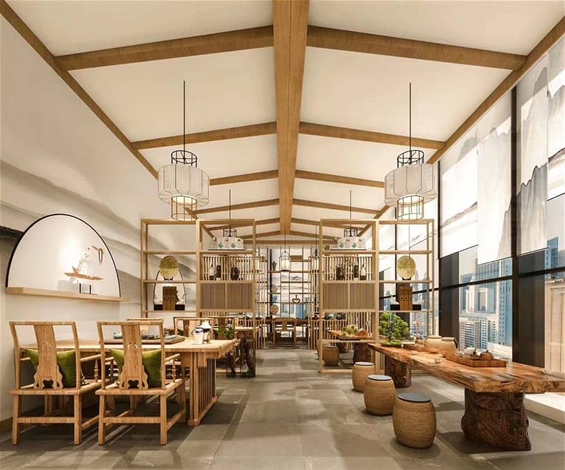 在茶藝館的設(shè)計(jì)中,局部照明設(shè)計(jì)和應(yīng)用是燈光設(shè)計(jì)的靈魂??傮w的空間的照度不要求很高,以人員能夠正常活動(dòng)的最低照度為準(zhǔn),把精力放在刻畫細(xì)節(jié)的局部照明上。每組插座應(yīng)該有一組燈管,最好是帶燈罩的燈光,或類似蠟燭的照明范圍不大的燈光,而且多采用熱色燈光,為品茶人創(chuàng)造一個(gè)溫馨、私密的空間。