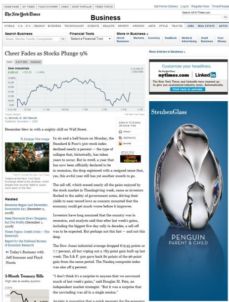 紐約時報在它的頁頭和主題內(nèi)容區(qū)域都沒有廣告,但在右側(cè)留了大塊面積給廣告: