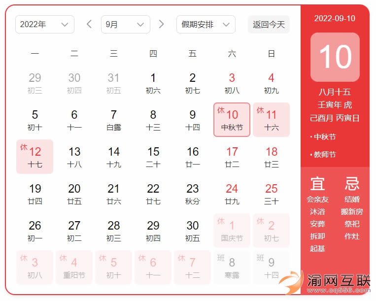 2022年9月10日至9月12日休假,9月13日(周二)恢復上班。