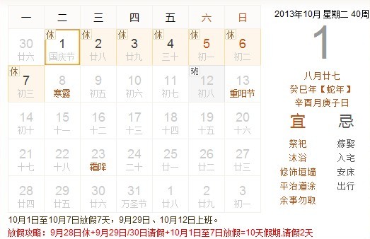 2013年國慶節(jié)放假詳細(xì)安排如下:【今年的安排特別亂,請(qǐng)仔細(xì)看】